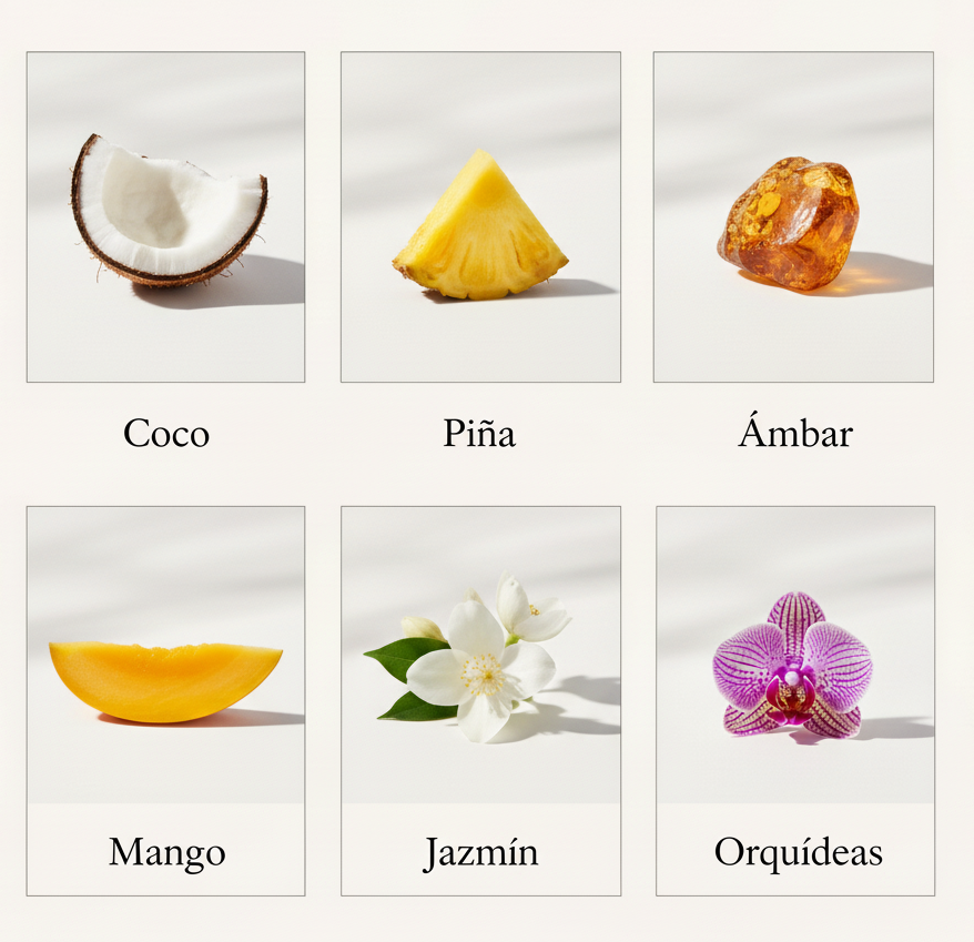 Tropical, floral, sensual y envolvente; vibrante pero elegante, con un toque adictivo y optimista.